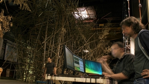 In the summer of 2009, acclaimed American artists, Doug and Mike Starn of Starn Studio asked Three Byte Intermedia to develop a video capture system to document the construction and evolution of their warehouse-sized sculpture entitled Big Bambu. The artwork consists of more than 2,000 poles of bamboo which are assembled by rock climbers under the direction of the Starn brothers. The piece is fascinating both for its statement as a static shape of impressive proportion, but also for the ongoing process by which it evolves over time.